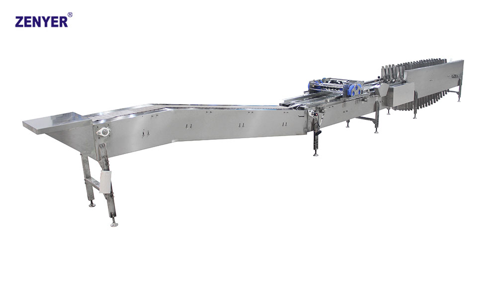 Línea totalmente automática para conectar a máquina principal de clasificación de huevos modelo 104A. Solo se Requiere 1 operador.